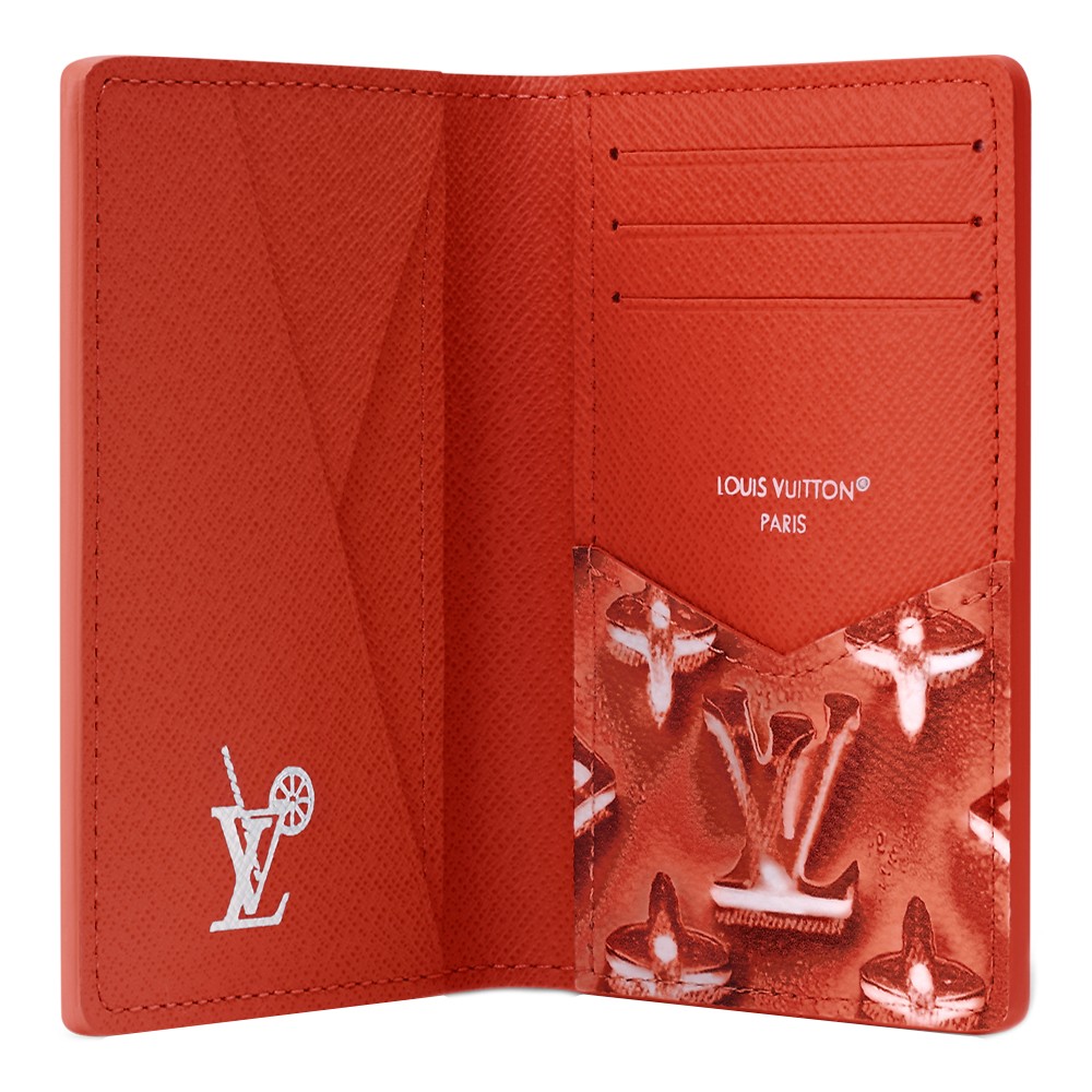 The Pocket Organizer compact wallet is made from vivid Monogram Ice Cubes coated canvas with a matching leather lining. This pocket-sized wallet offers three card slots, five inside pockets, and a convenient outside back pocket. The interior is finished with a hot-stamped LV Glass signature, complete with a straw and fruit slice.