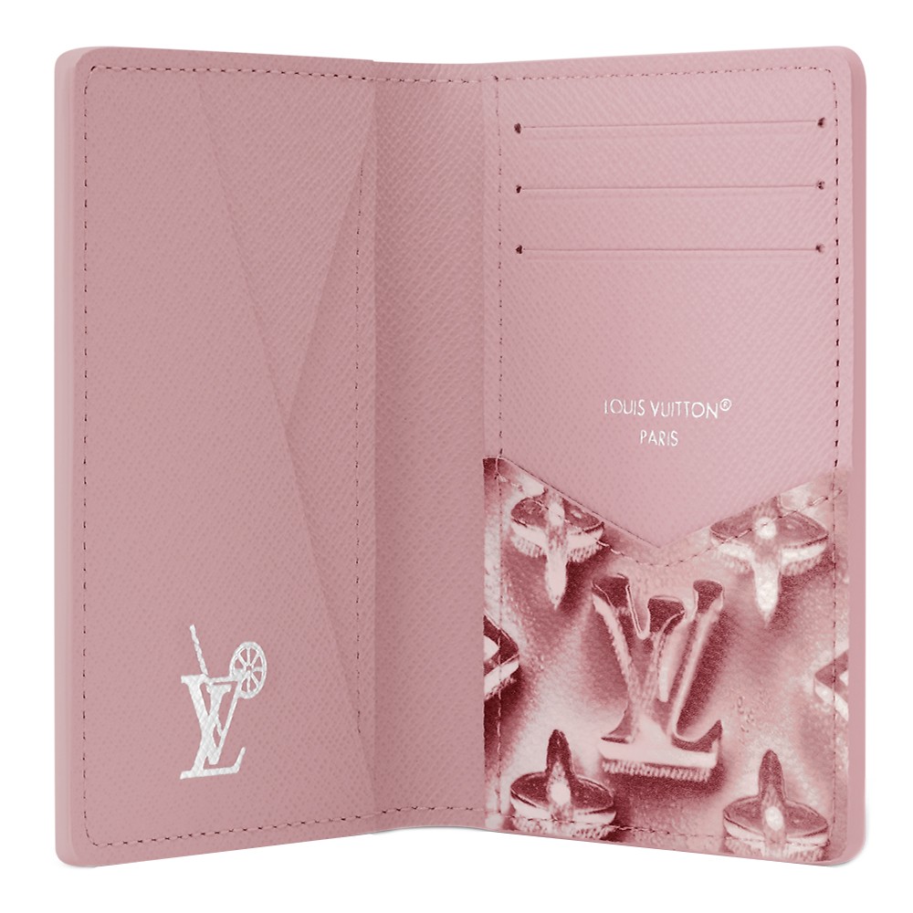 The Pocket Organizer compact wallet is made from vivid Monogram Ice Cubes coated canvas with a matching leather lining. This pocket-sized wallet offers three card slots, five inside pockets, and a convenient outside back pocket. The interior is finished with a hot-stamped LV Glass signature, complete with a straw and fruit slice.